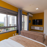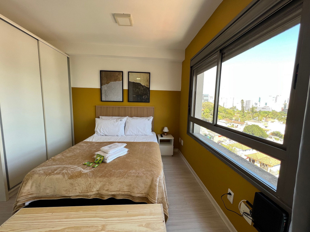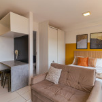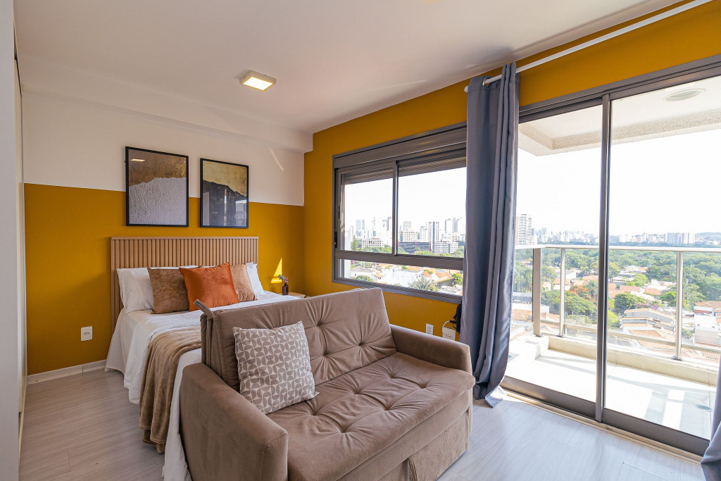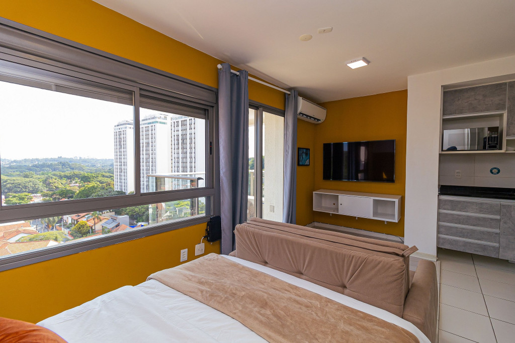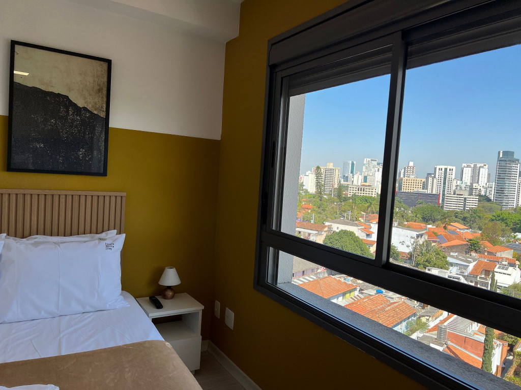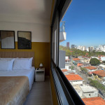 O apartamento é amplo e iluminado, com grandes janelas e esquadrias, onde permitem que a luz natural adentre todo espaço, o tornando ventilado e luminoso durante o dia e a noite. É um ambiente que combina conforto e modernidade, tendo cores vibrantes e alegres, contrastando entre tons quentes e nudes. Sua localização é privilegiada, sendo em um bairro cheio de lojas de moda independente, cafés casuais, galerias de arte contemporânea, bistrôs, bares descontraídos, e os espaços de música ao vivo que abrigam apresentações de soul, funk e samba, ou seja, um bairro eclético e cheio de diversidade, atendendo assim todos os estilos e preferencias.