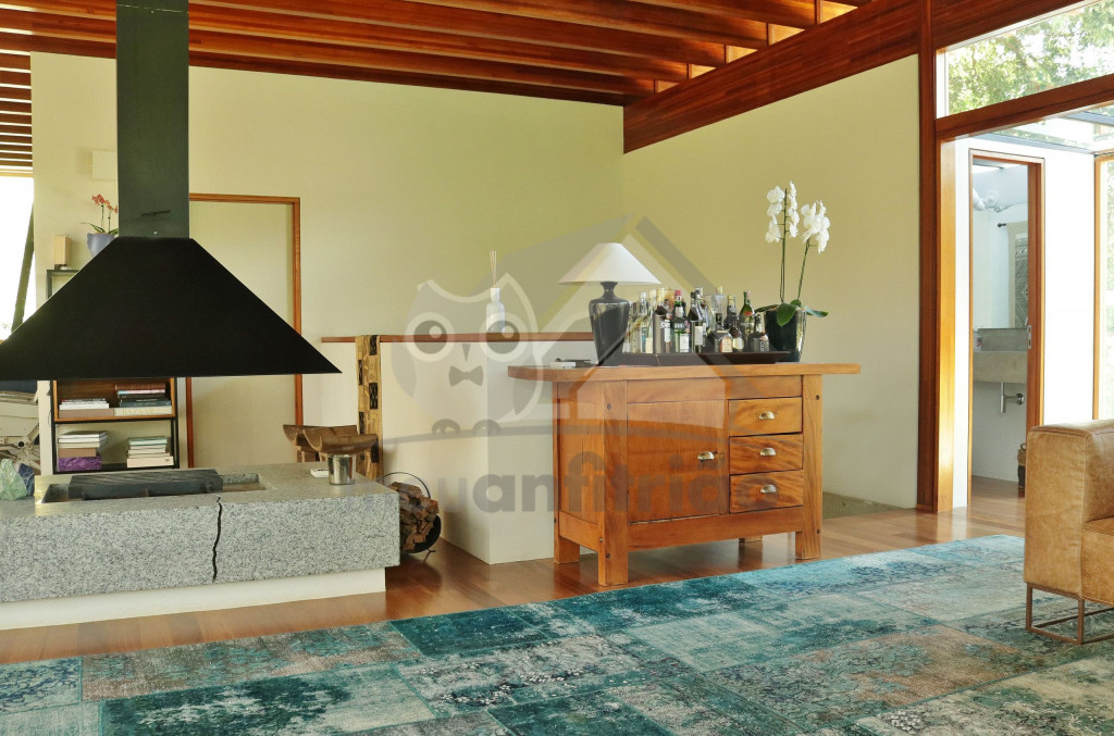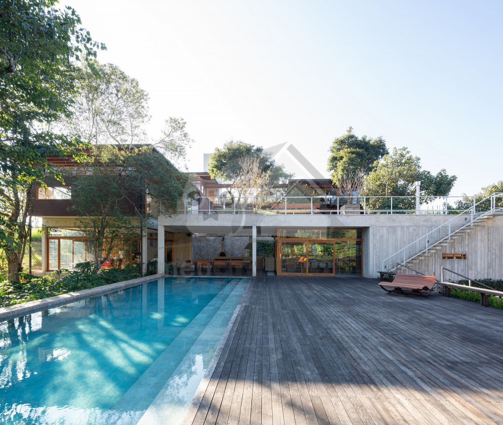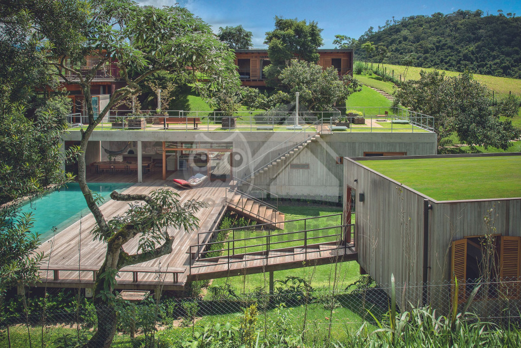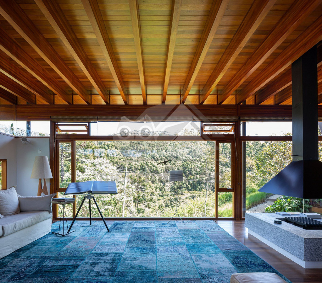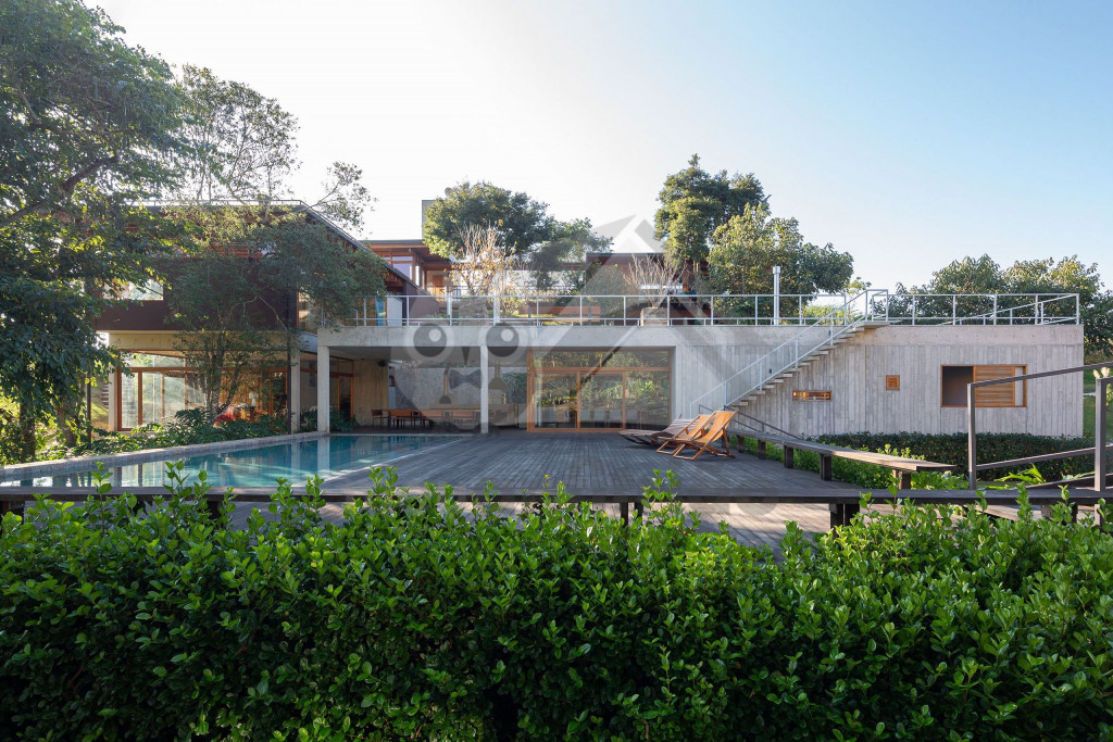 Assinada pelo famoso arquiteto Gui Paoliello, a casa foi dividida em blocos com grandes janelas de vidro que trazem uma sensação de imersão na natureza. Além disso, sua infraestrutura é completa contando com piscina, ofurô, 6 suítes, espaço home office, varandas com vista para montanha, área gourmet e muito mais.