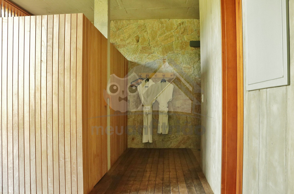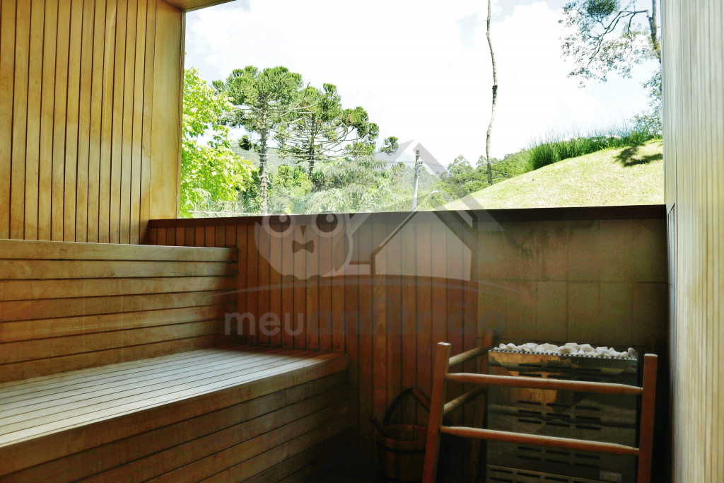A área de lazer é impecável, proporcionado aos hóspedes uma experiência completa. Conta com piscina, deck com espreguiçadeiras, sauna seca, ofurô, área gourmet com churrasqueira e forno de pizza, além de jardim suspenso com horta e pomar. Também dispõe de sala de estar com lareira, sala de cinema, sala de convivência com aquecedor entre duas suítes e sala de jantar para 10 pessoas.