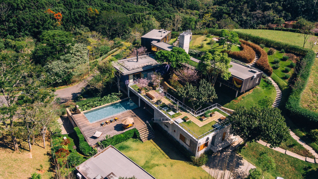 A Vila Pinhal possui de 731m2 e fica em um terreno de 4.600 m2. Ela se trata de uma casa conceito dividida por blocos, todos muito modernos e arejados. A decoração foi assinada pela Arquiteta Ana Cruz, a mesma que cuidou do Hotel Six Senses Botanique.