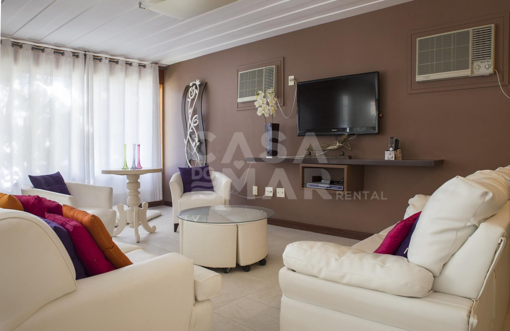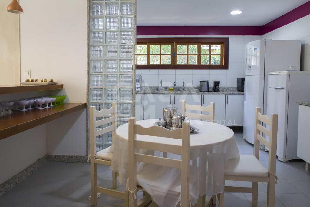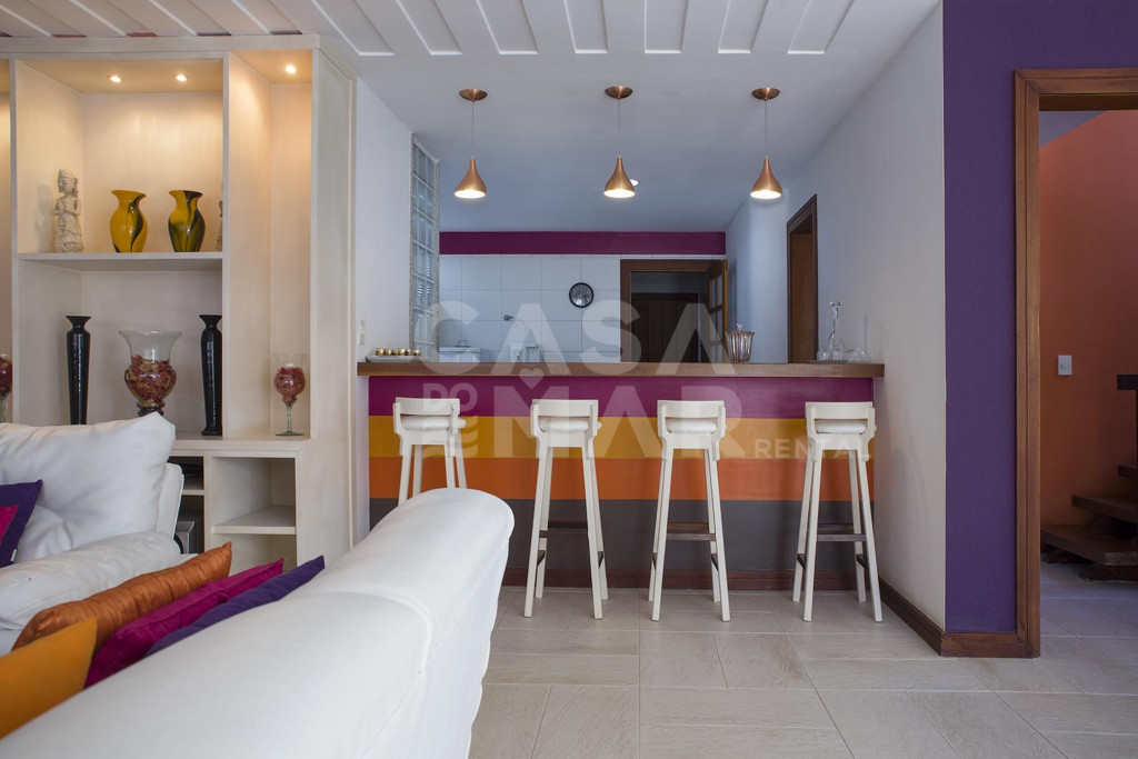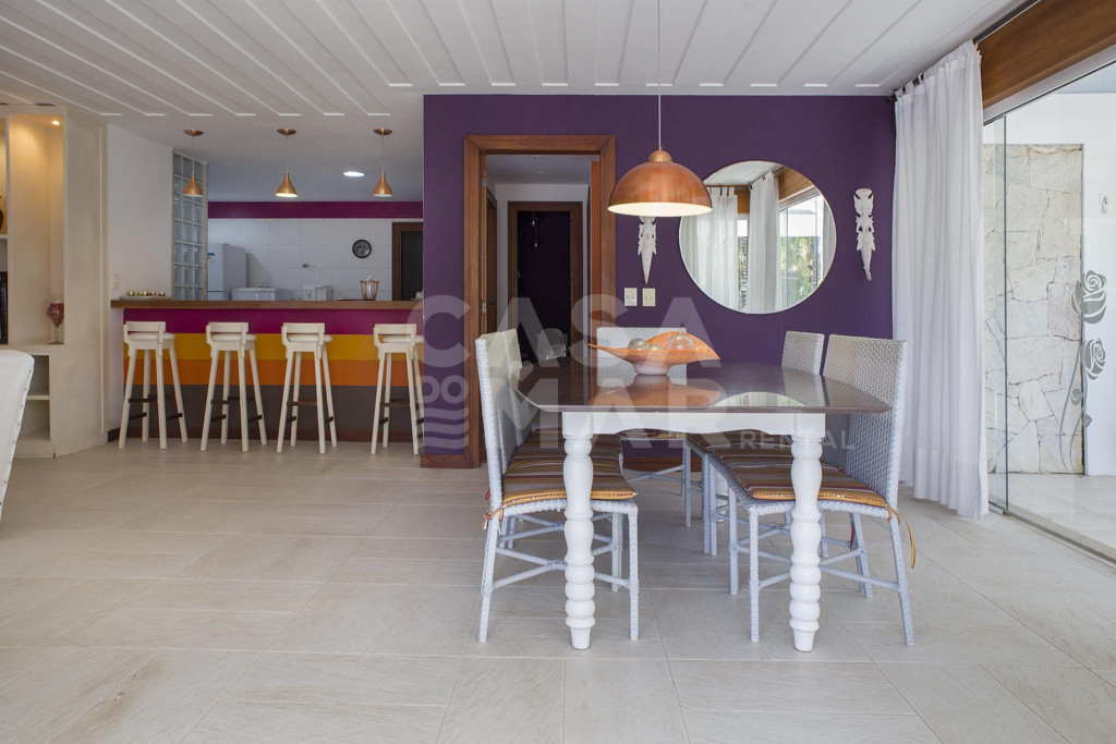 Lindíssima casa, totalmente arejada, decoração unindo estética e clareza ao ambiente. Paisagismo singular.A casa oferece cinco suítes, todas com ar condicionado, amplas sala de estar e de tv, além da sala de jantar. Amplas varanda, possibilitando admirar a beleza da natureza buziana.O condomínio fica há apenas 8 passos da Praia de Geribá (Canto Esquerdo). Ótima localização para quem tem filhos, e deseja ficar em um lugar tranquilo, nas lindas águas de Geribá.