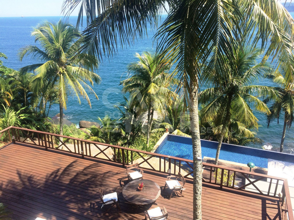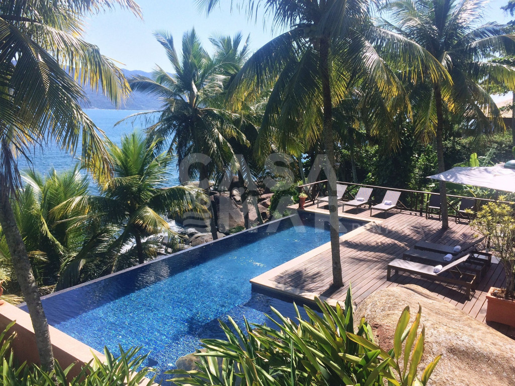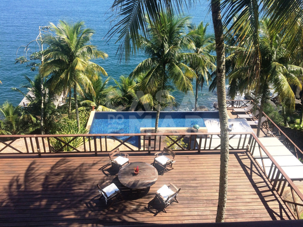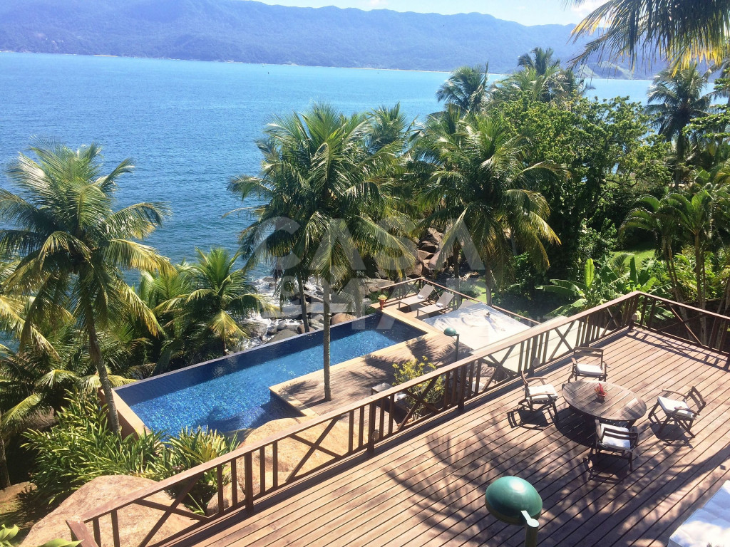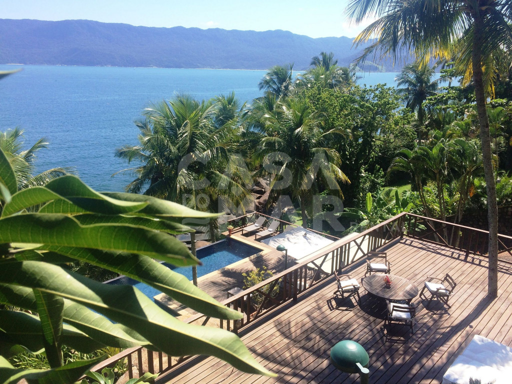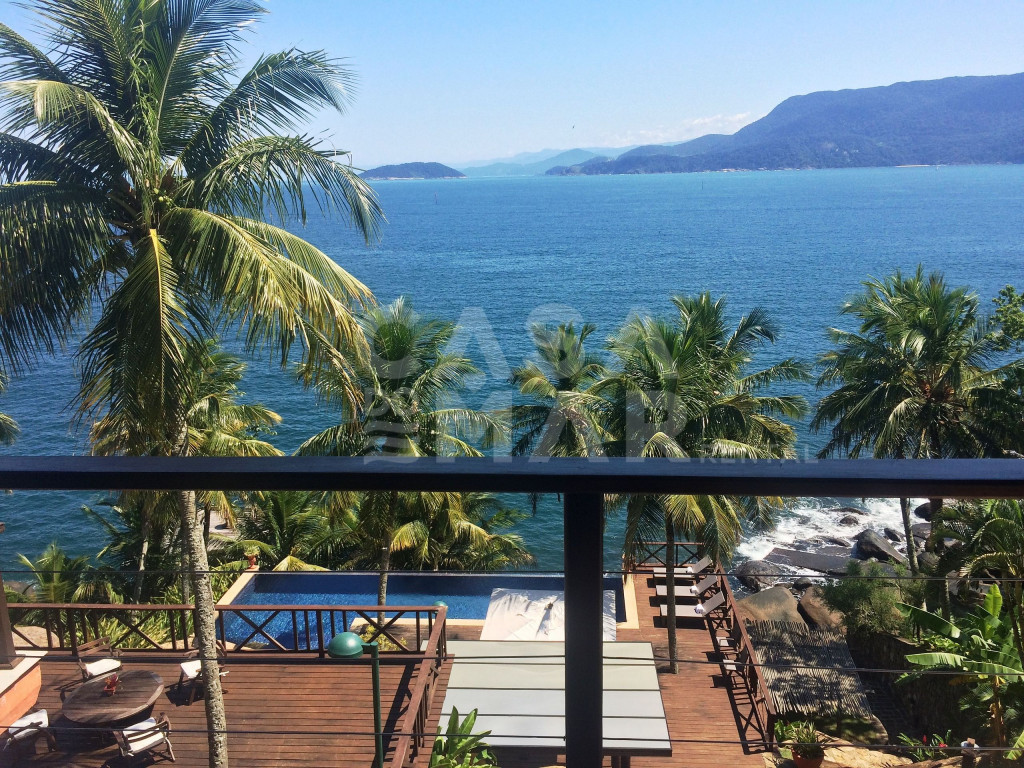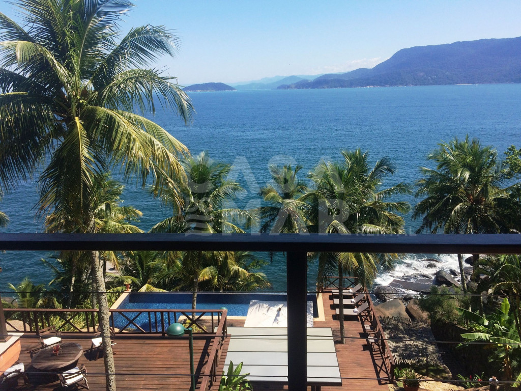 Linda casa com 6 suítes, e vista panorâmica do mar. Um suíte externa e cinco externas, a casa tem área construída de 1.100 metros quadrados, em terreno de 3.700 metros quadrados, comportando confortavelmente até 15 pessoas.Lindo deck sobre o mar, com fácil acesso, piscina de borda infinita, sauna à vapor e paisagismo completo, em total harmonia com a natureza de Ilhabela.Salas de jantar, de estar de e de TV, e cozinha completa.Perfeita opção para quem deseja conforto e tranquilidade de frente para o mar.
