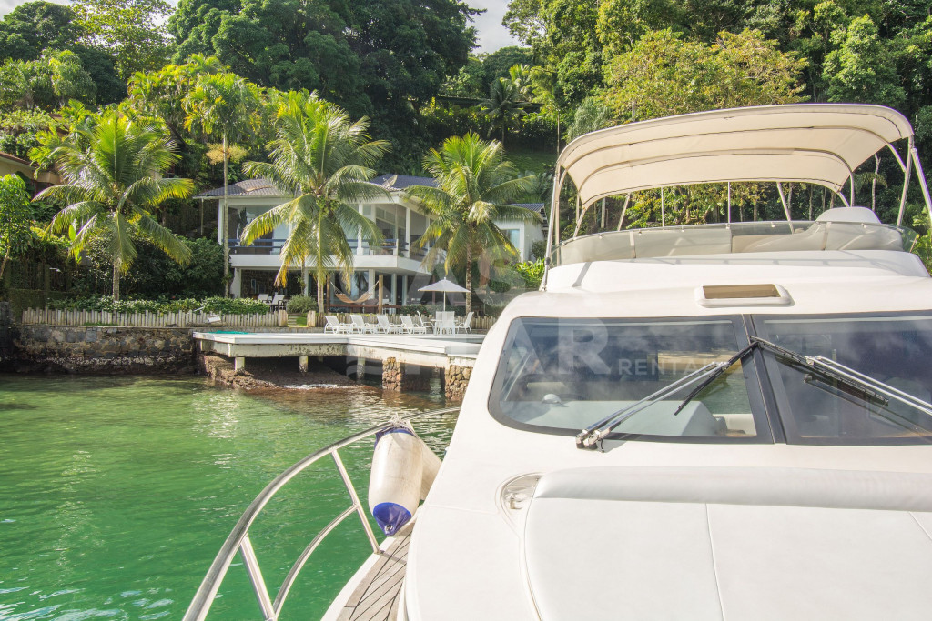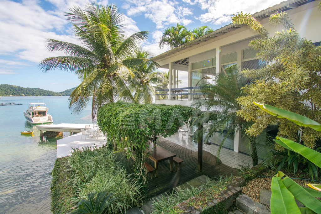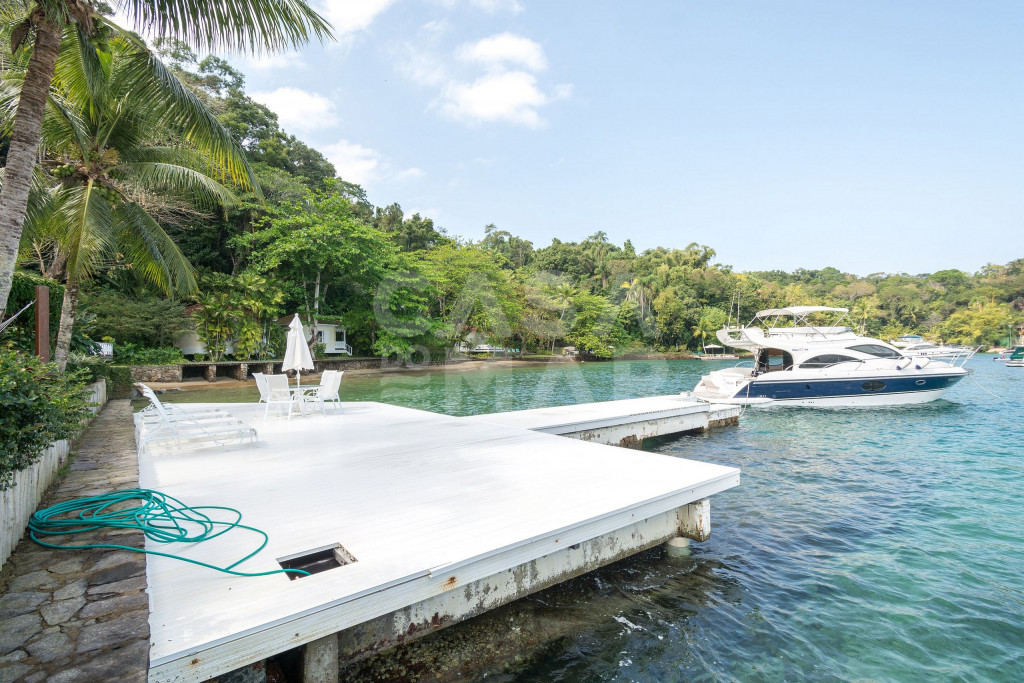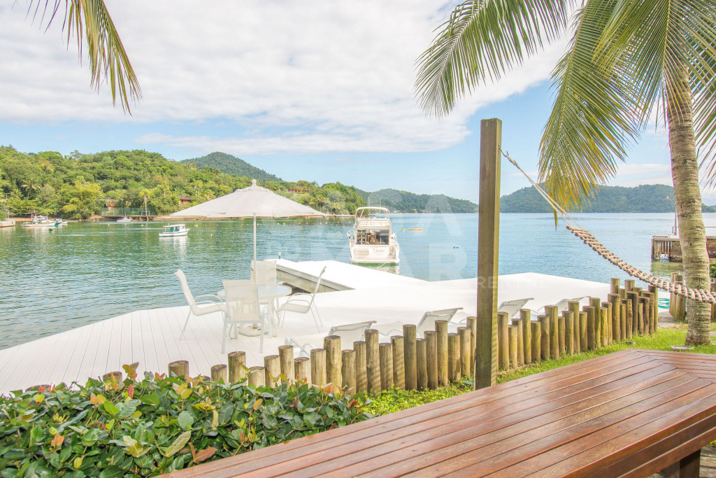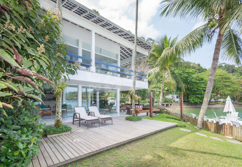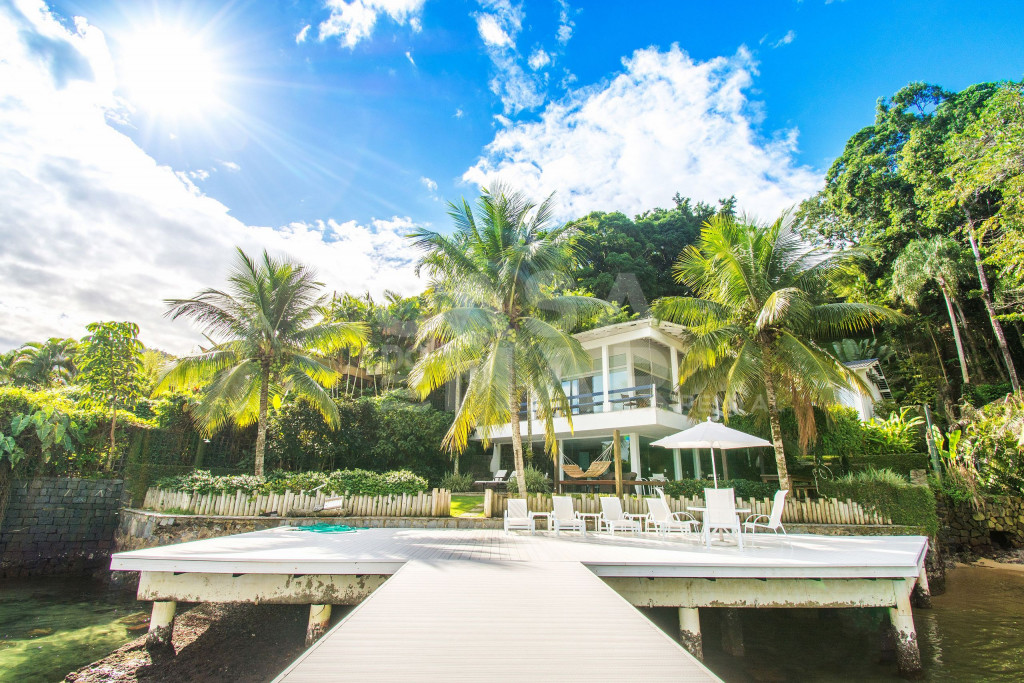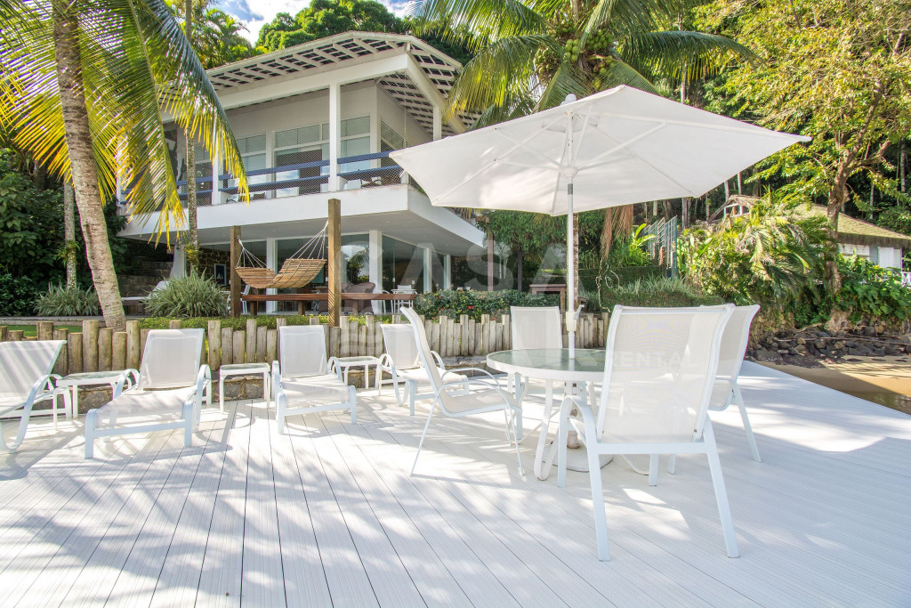 Linda Villa frente mar com sete suítes, com infraestrutura completa, e praia privativa.Todas as suítes com ar condicionado, área de lazer completa, com espaço gourmet (forno à lenha e churrasqueira), gazebo coberto pela natureza, amplo deck sobre o mar.Redes de descanso distribuídas pela casa com vista encantadora do mar e natureza.Três salas de estar, sala de jantar, cozinha completíssima, roupas de cama, banho e praia de excelentíssimo padrão.Essa Villa está localizada a apenas 141 km do Rio de Janeiro.- Consumo de água e luz é pago a parte.