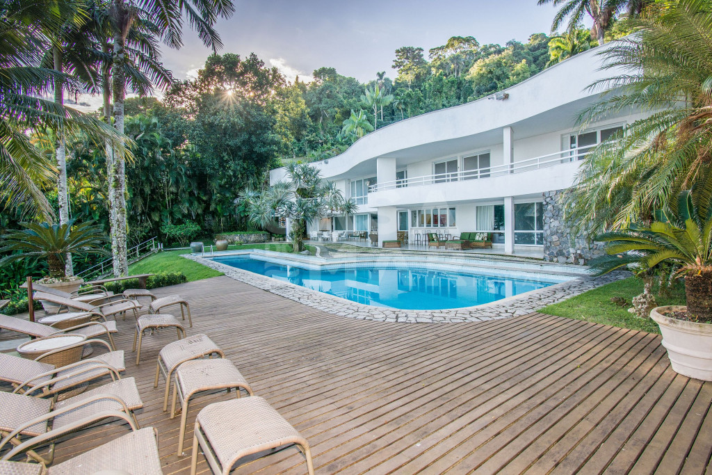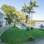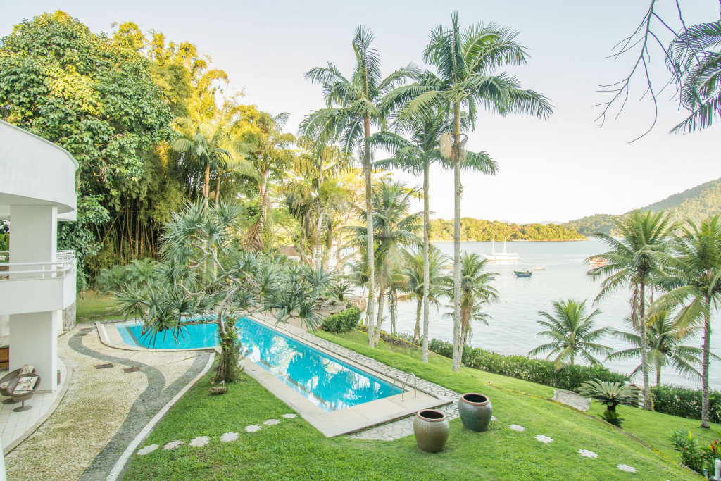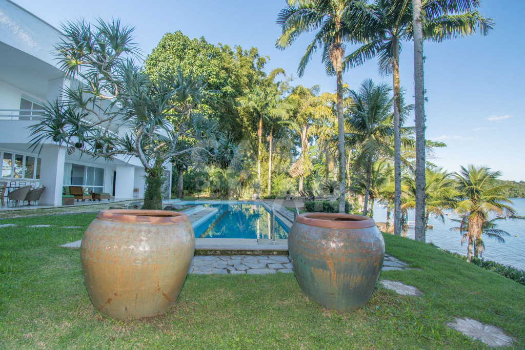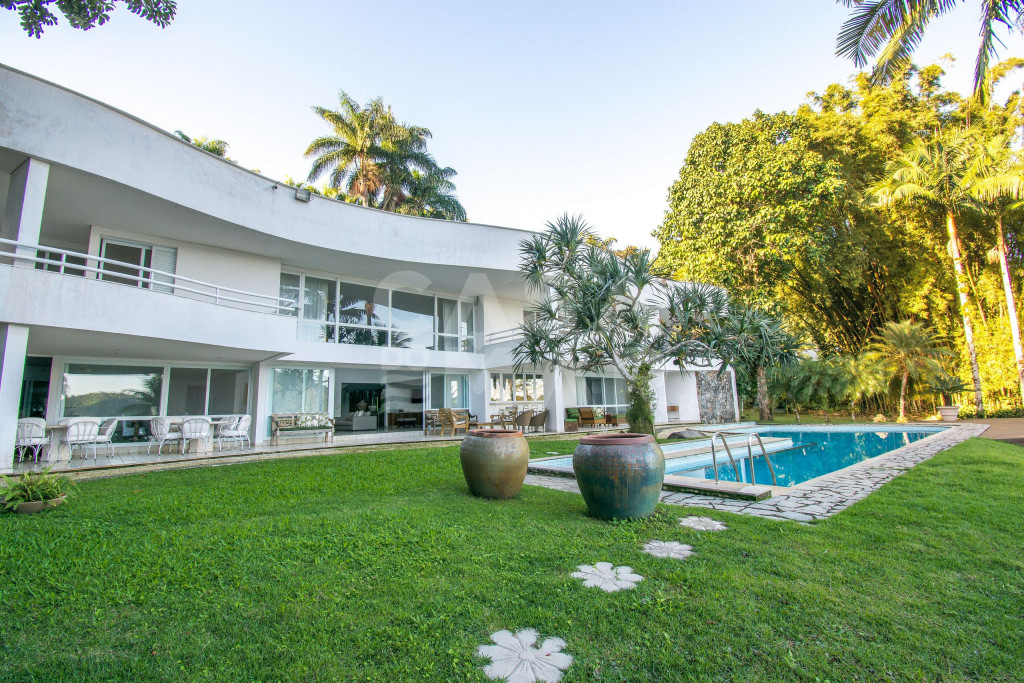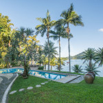 Linda casa com oito quartos, completíssima, com praia particular, rodeada de muito verde!
