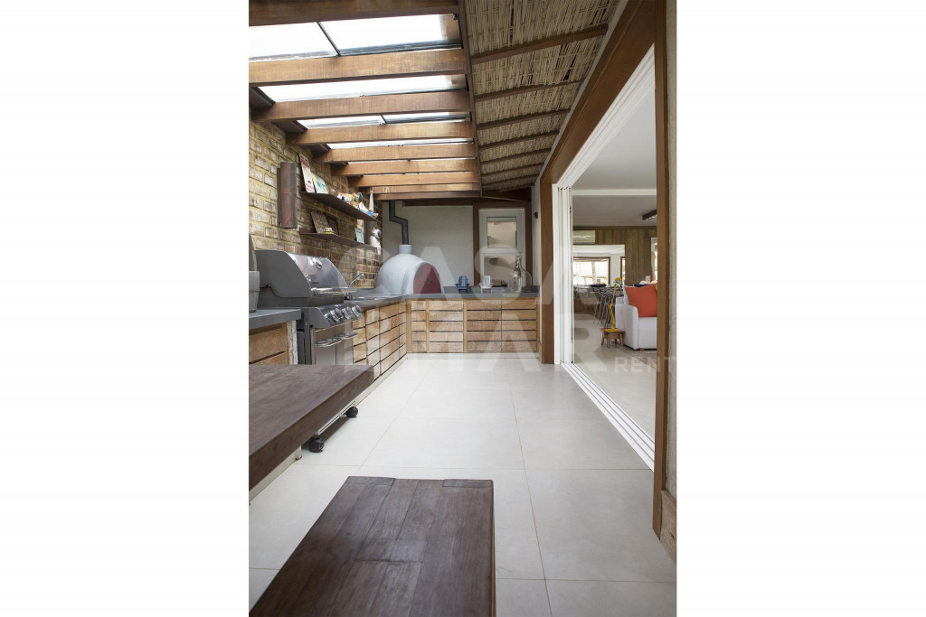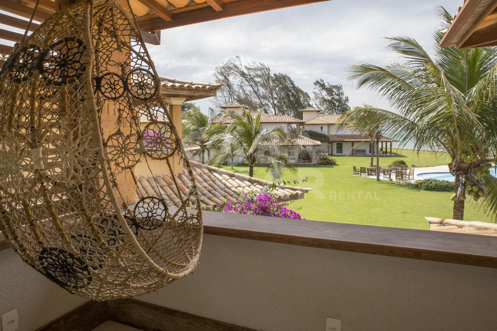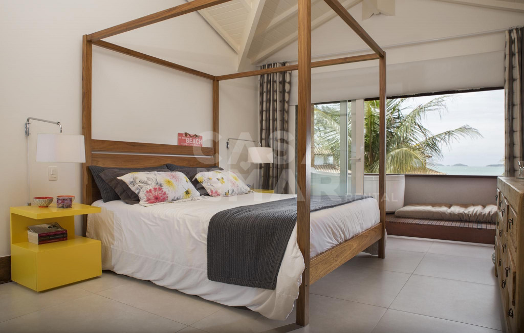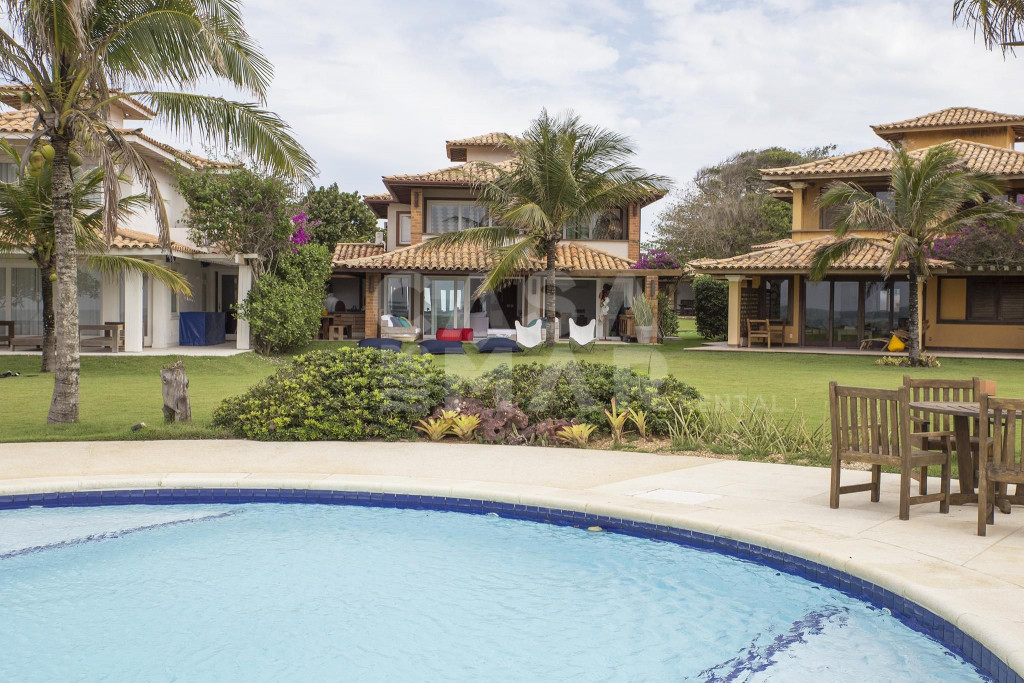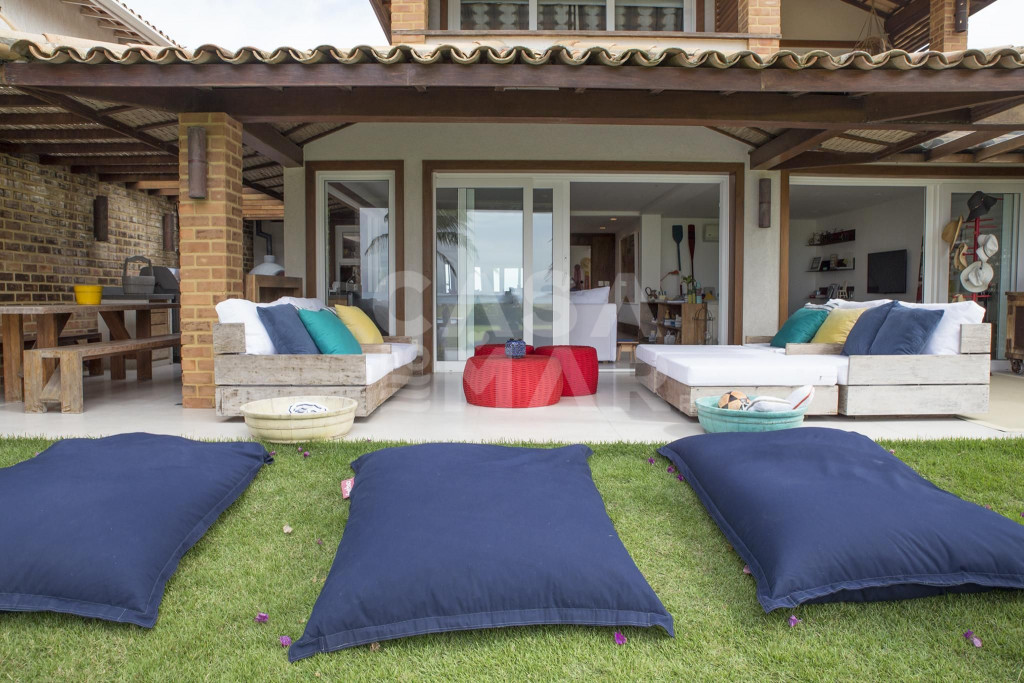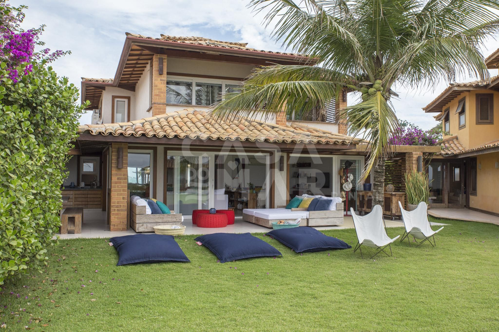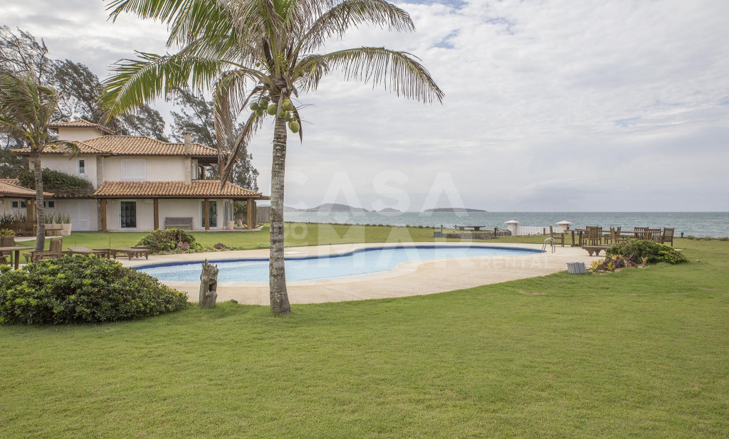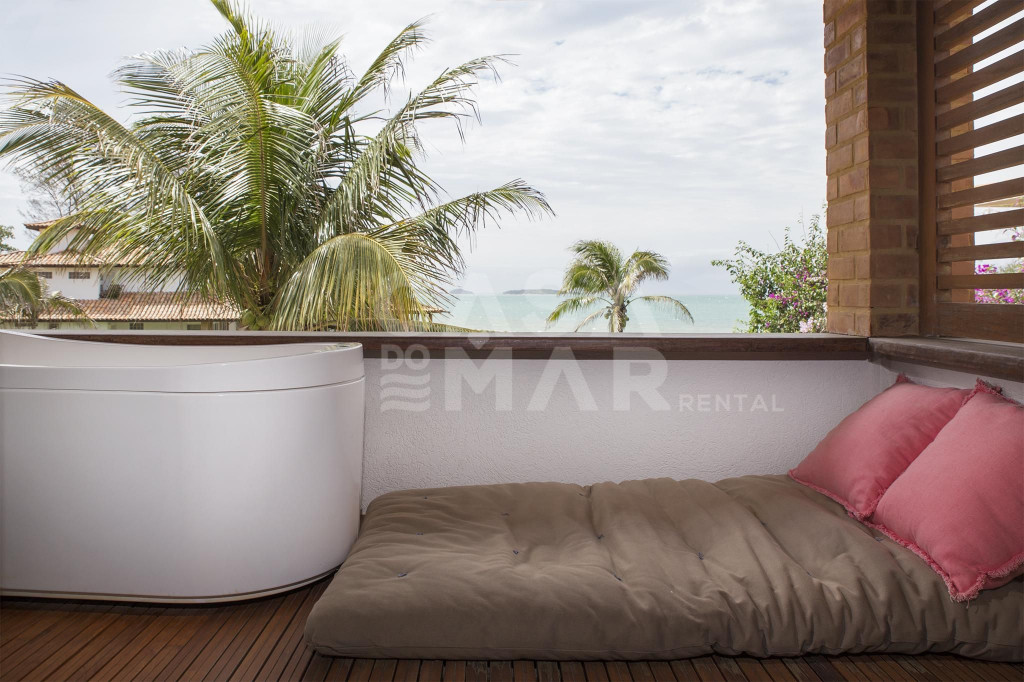 Linda casa com cinco suítes, em frente à praia de Manguinhos, pé na areia.Casa muito charmosa, decorada com muito estilo e em total sintonia com a natureza de Búzios. Amplas suítes, todas com ar condicionado, com vista panorâmica da praia, amplos banheiros, duas salas de estar, sala de jantar para até 10 pessoas.Ampla cozinha, totalmente equipada com todos os utensílios necessários. Tv a cabo e internet Wi-Fi de alta velocidade.Área externa impecável, com churrasqueira, forno de pizza à lenha, geladeira de cerveja e muito conforto. Tudo isso, com a vista exclusiva da praia.A casa é perfeita para grupo familiar, que procura tranquilidade, sossego e conforto.-Água e luz pago a parte.