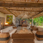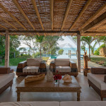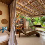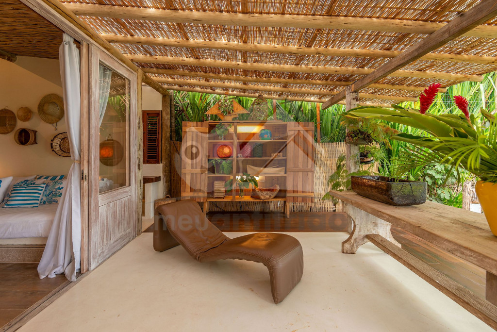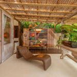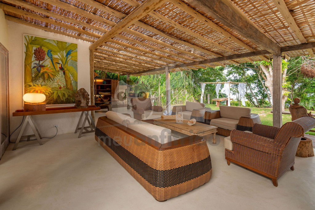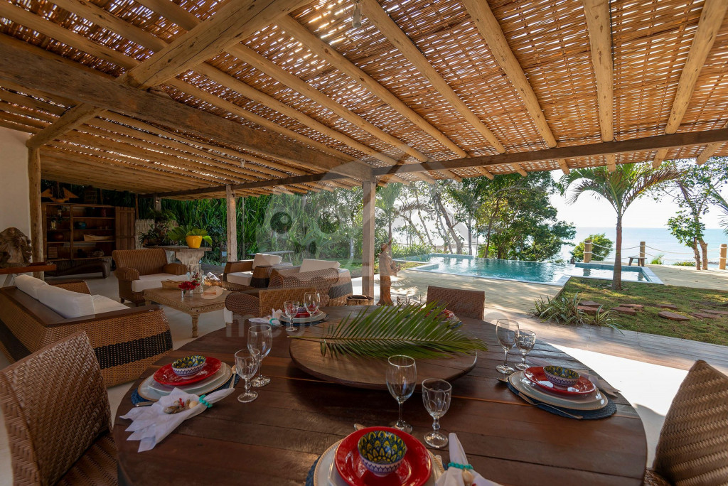 O ponto alto fica na área externa, que conta com uma ampla sala de estar com cadeiras, sofás, poltrona para leitura e um jardim para apreciar a vista da falésia. Na varanda também há uma mesa de jantar para refeições especiais.