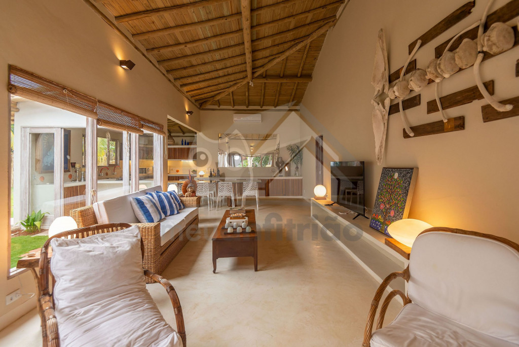 A casa é extremamente confortável e acomoda grupos de até 12 pessoas em quatro suítes sendo duas com bicamas. Todos os quartos possuem ar-condicionado e dossel nas camas.