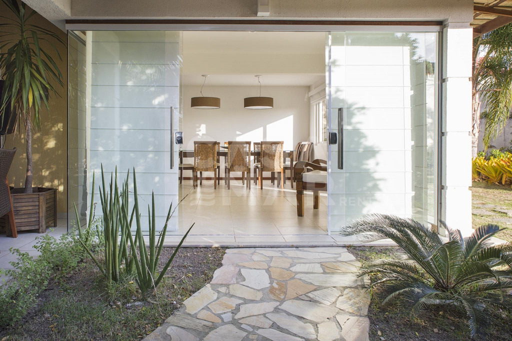 Linda casa com quatro suítes, perfeita opção para locação por temporada, equipada com ar condicionado, roupa de cama e de banho de excelente padrão. Sala de estar, sala de jantar, cozinha e varanda completam a propriedade.A casa totalmente equipada, comporta até 10 pessoas confortavelmente.Condomínio com apenas 8 casas, fica há poucos metros do canto esquerdo da Praia de Geribá, com lindo paisagismo, piscina grande, sauna e espaço gourmet completo. Estacionamento para até dois carros.Fácil acesso à praia!