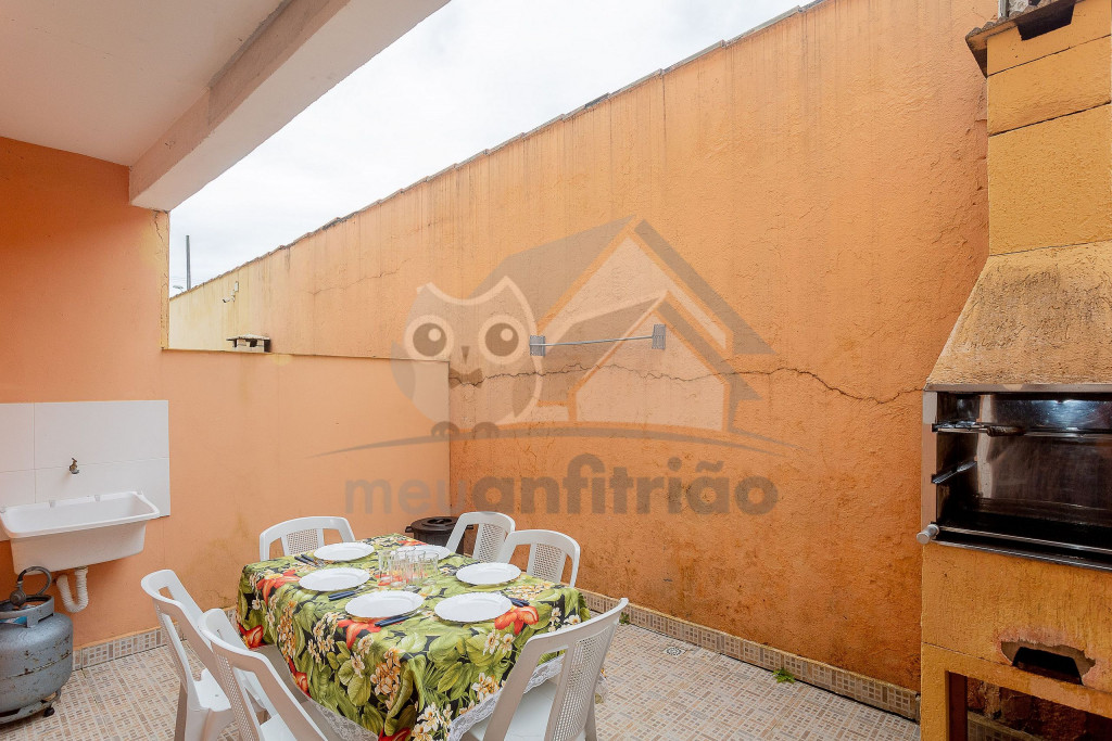 Para maior comodidade, atrás do chalé, oferecemos uma área externa com churrasqueira privativa com mesa, cadeiras e um tanque de lavar roupas.