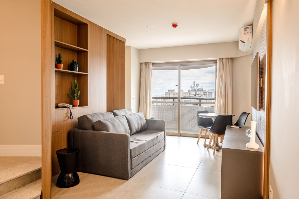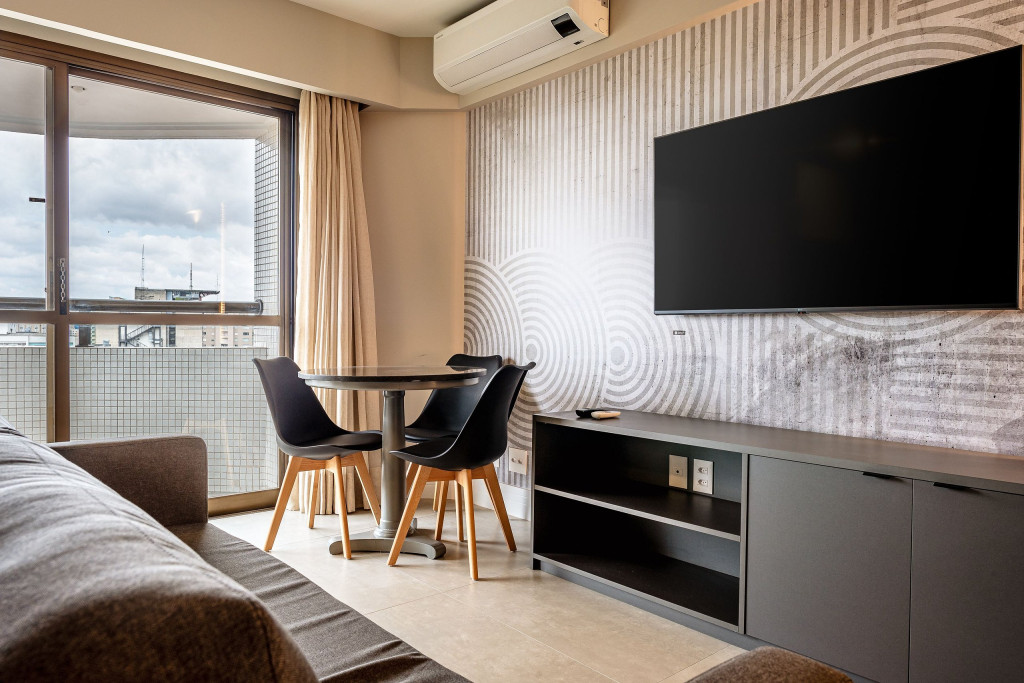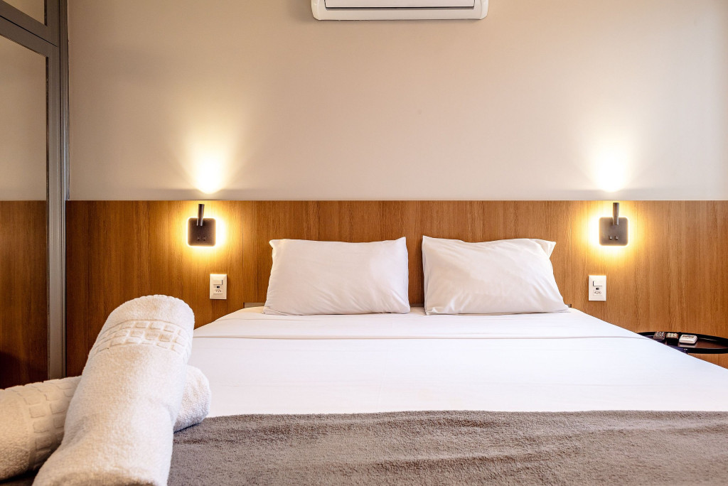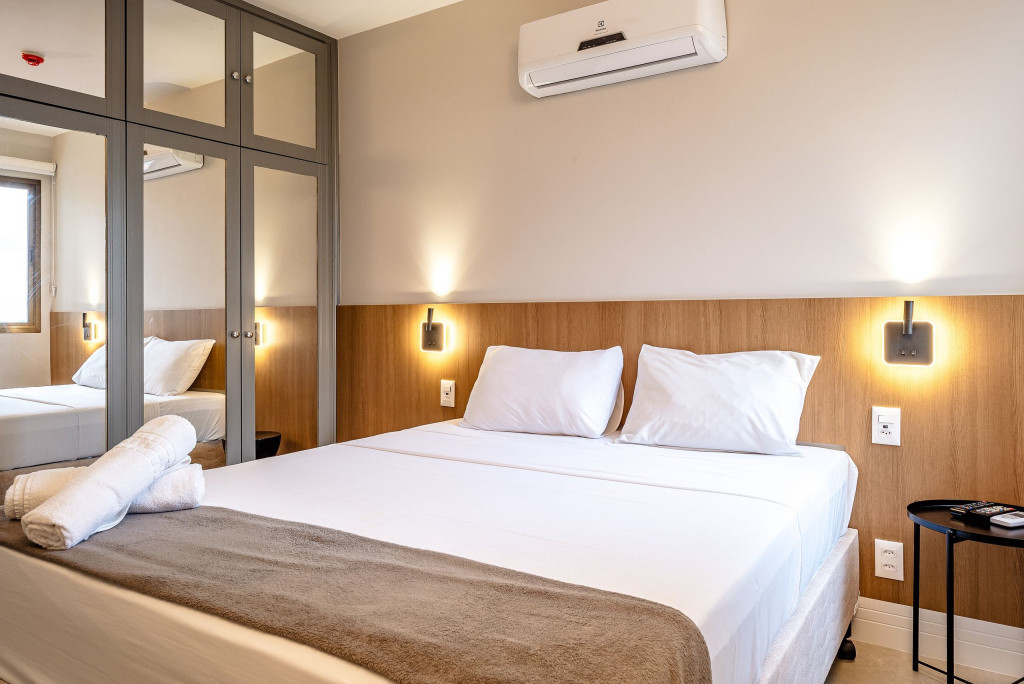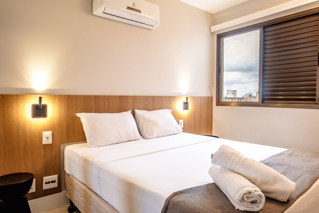Em uma das localizações mais privilegiadas da cidade com vista do 21º andar. Apto espaçoso, 54 m² para até 4 pessoas, com cozinha compacta e um banheiro espaçoso com chuveiro no teto. Piscina na cobertura, serviço de quarto e camareiras diariamente.