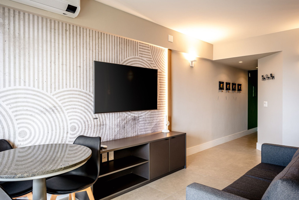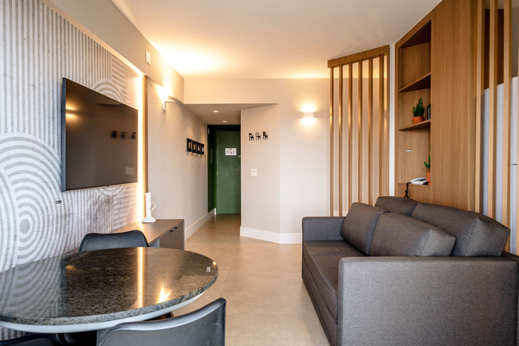Nossa acomodação está prontinha para te receber. Casais a passeio, visitas a trabalho ou convenção nos arredores, toda a estrutura hoteleira estará disponível para você desfrutar este período conosco. A unidade está no 21º andar, olha só o que você irá encontrar por aqui: