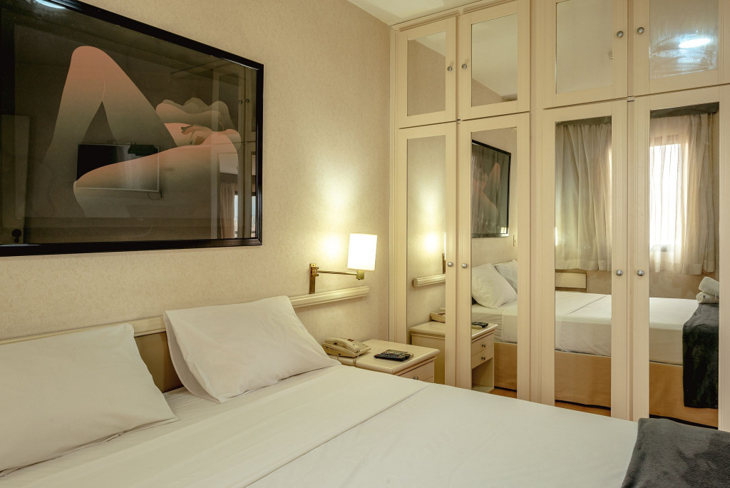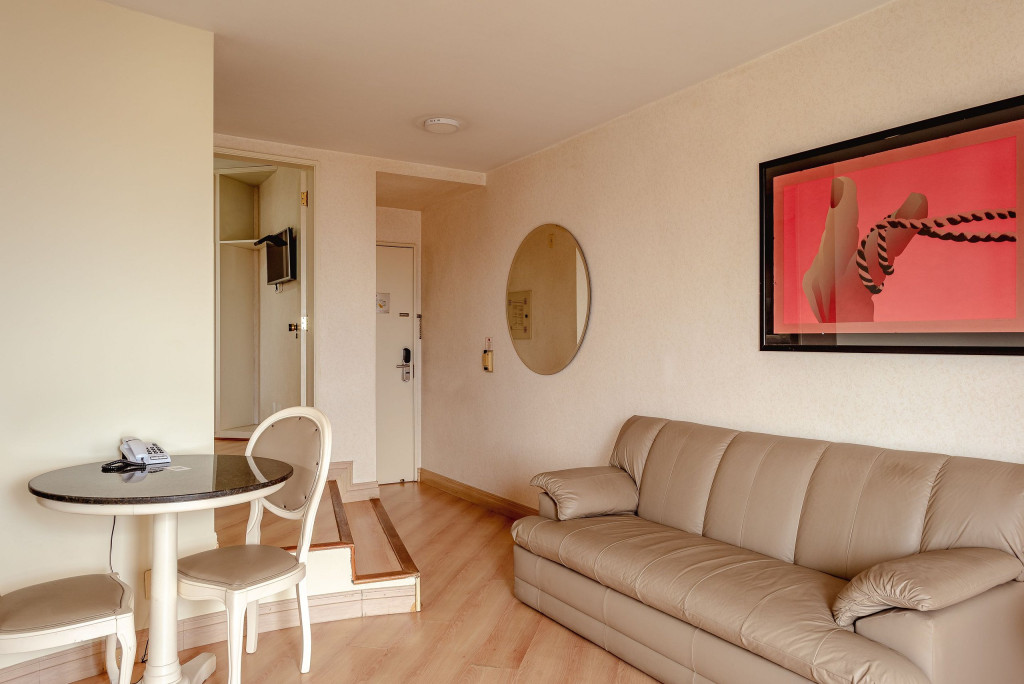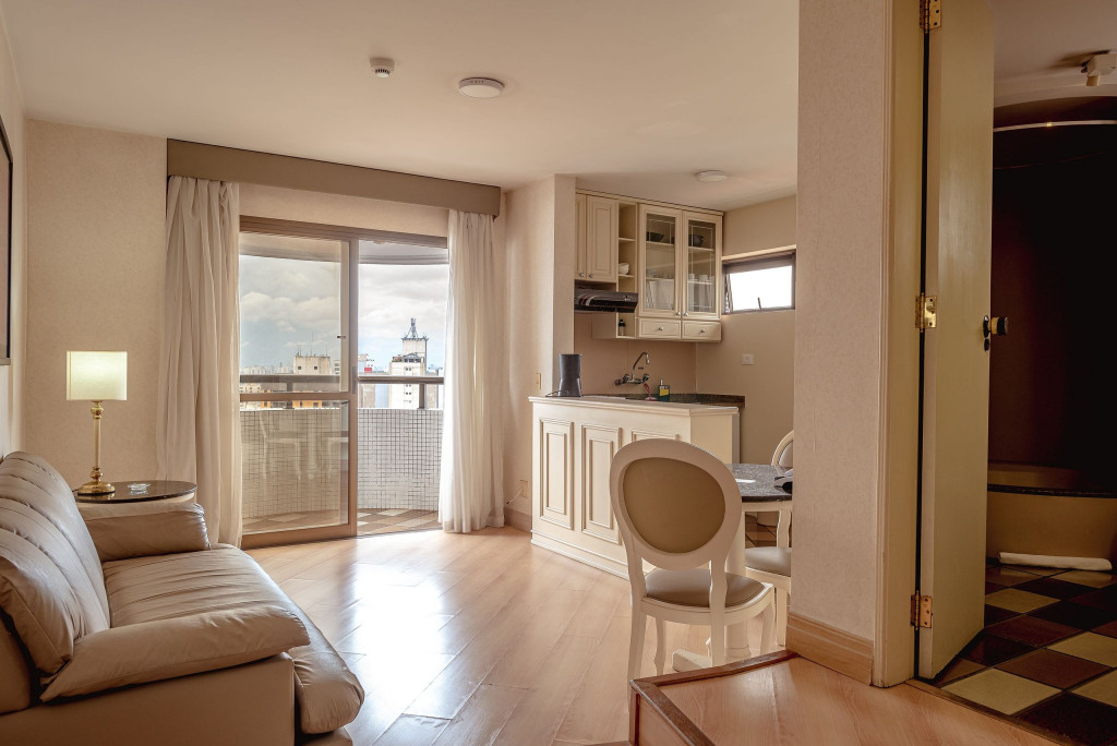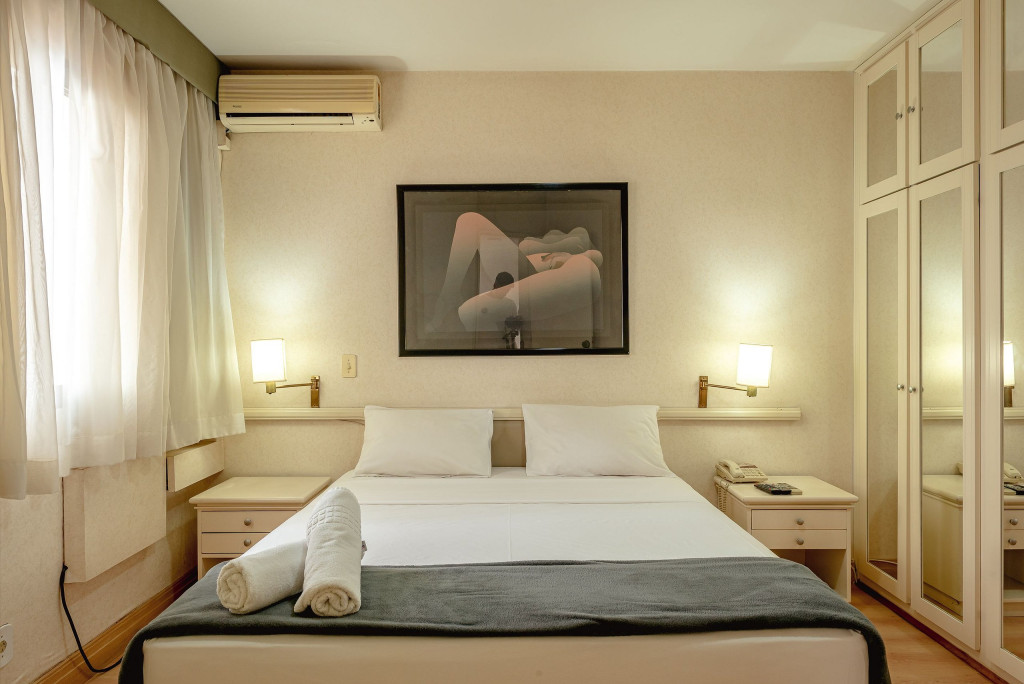 Em uma das localizações mais privilegiadas da cidade com vista do 23º andar. Apto espaçoso, 47 m² para até 2 pessoas, com cozinha compacta e um banheiro espaçoso com hidro. Piscina na cobertura, serviço de quarto e camareiras diariamente.