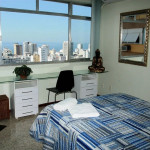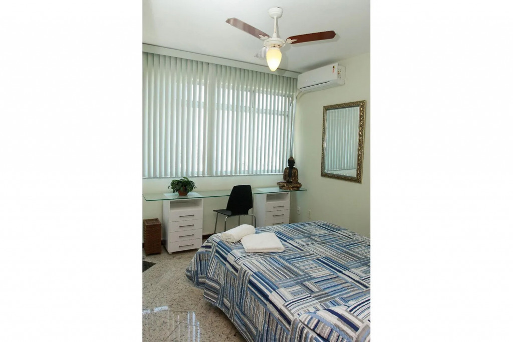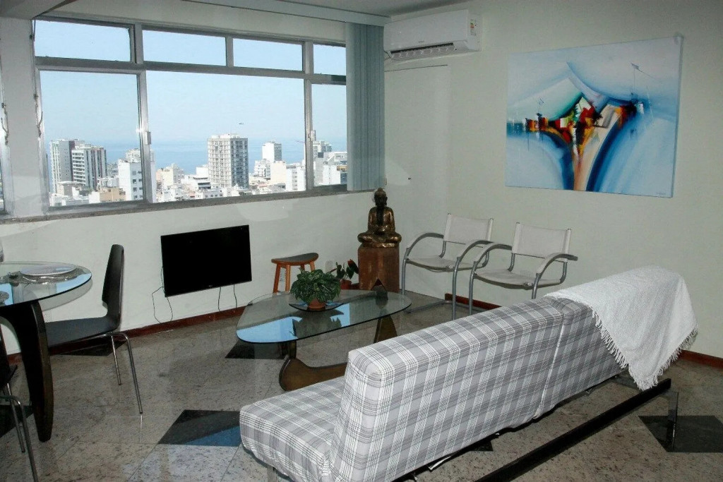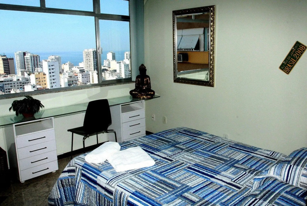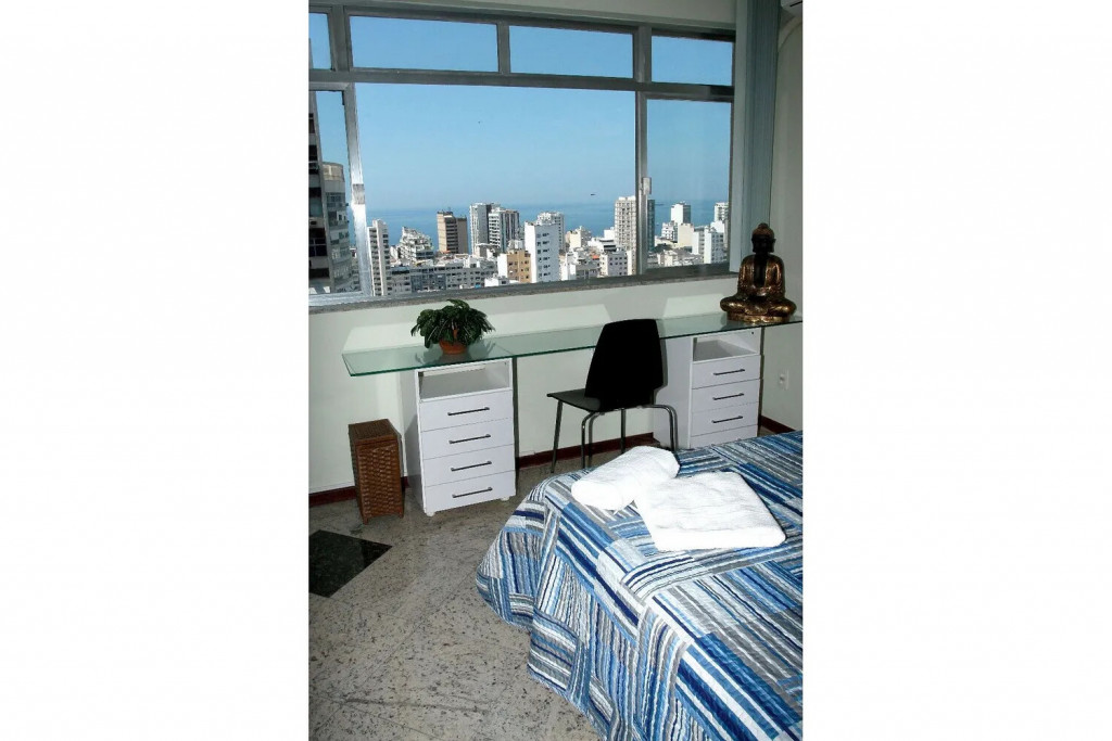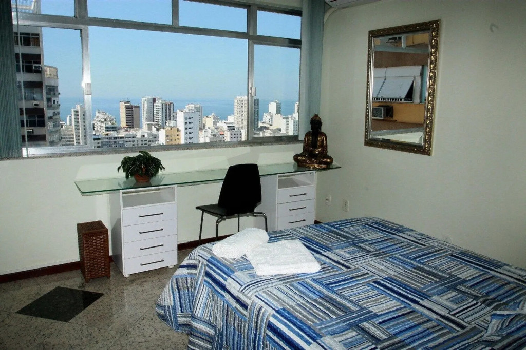 Um maravilhoso Quarto e Sala com vista para o mar de Ipanema e banheiro com vista para a Lagoa Rodrigo de Freitas. Cozinha completa. O quarto tem cama de casal e mesa de trabalho/estudo e ar split.