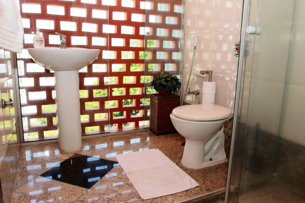 Fornecemos uma (1) rolo de papel higiênico e um sabonete (1) por banheiro, não fazemos reposição;