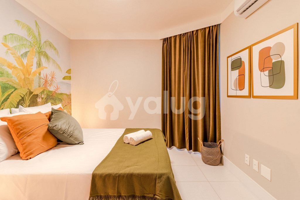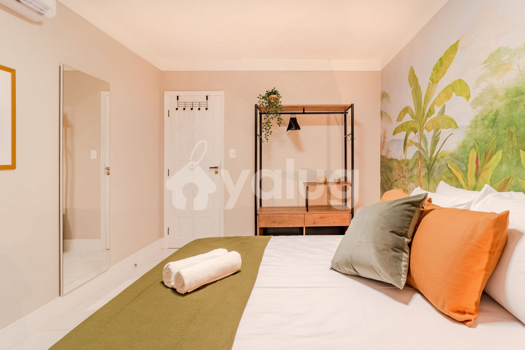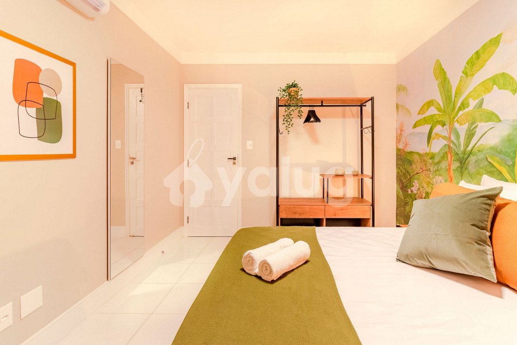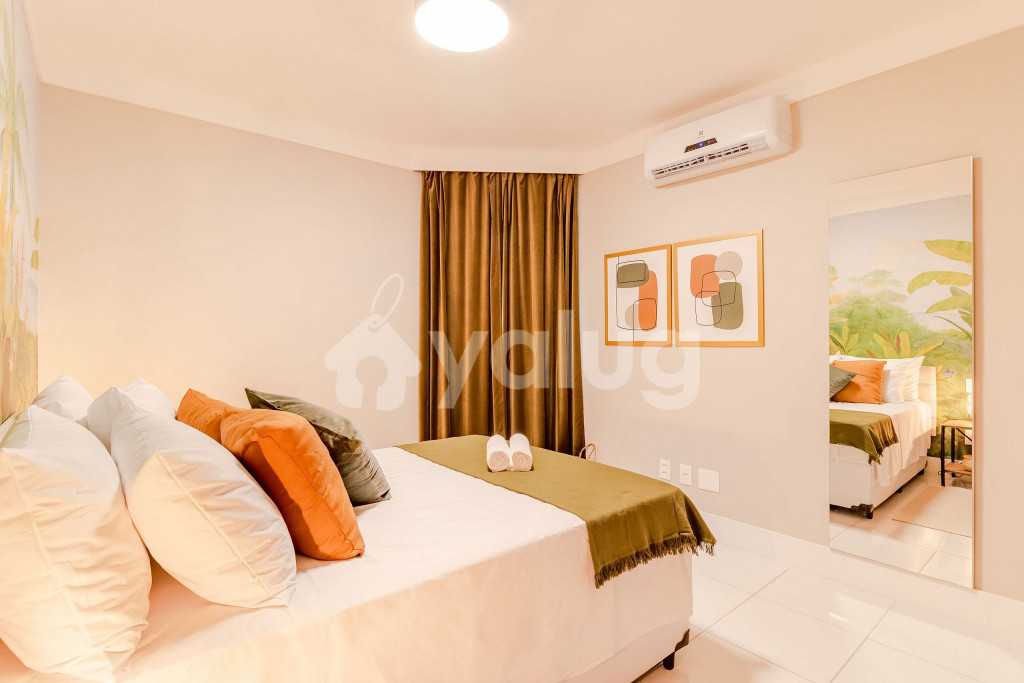 A composição do imóvel é da seguinte forma:Quarto 1: 1 cama casal, ar condicionado split, armário e cortina blackout.Sala de Estar: 1 sofá-cama de casal.** Fornecemos 2 esteiras com encosto de praias.