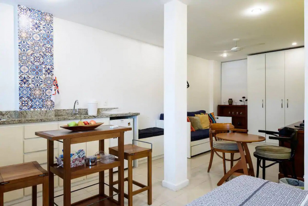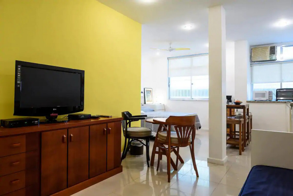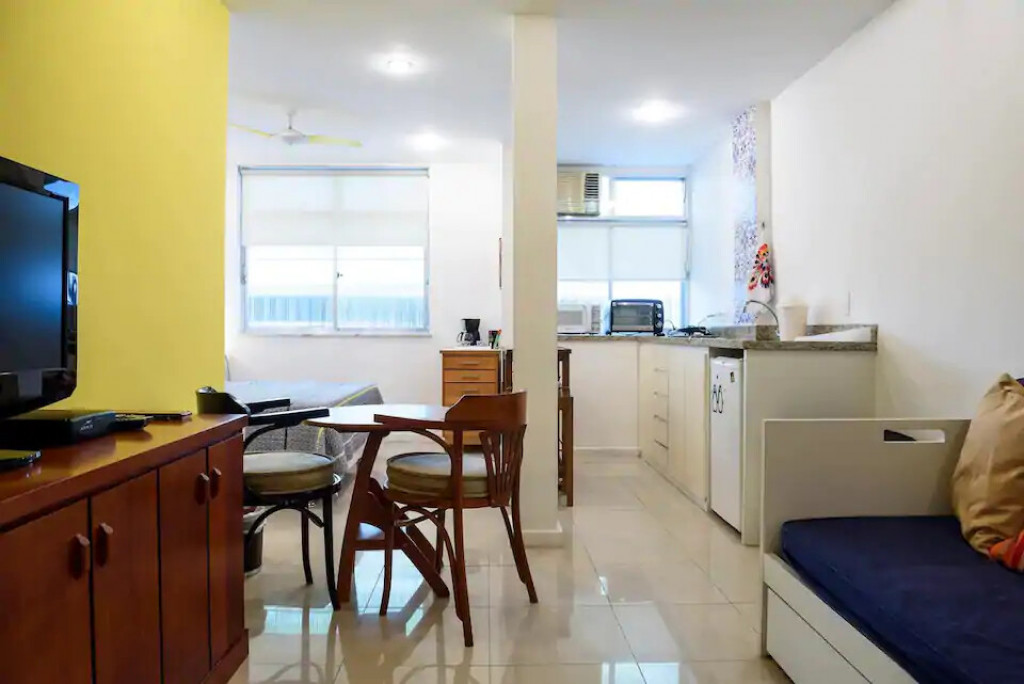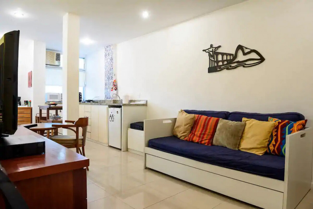 Cosy loft at Rua Joaquim Nabuco, a street that link Copacabana to Ipanema beach. The space has 40m² with air conditioning, wifi internet, and a queen size bed. The living room has a sofa-bed, table for meal/work, Cable TV, wardrobe and laudry machine.
