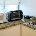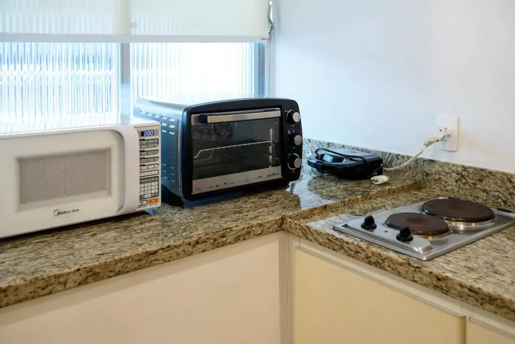 The kitchen has refrigerator, eletric cooker, microwave, coffee machine, oven and all the utilities.