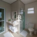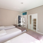 São 6 suítes, todas com ar condicionado e camas ‘king’ size (1 suíte no piso térreo com 3 camas individuais). Possui ampla sala de convivência, sala de jantar, espaço para refeições na área externa e interna, lavabo e extensa varanda com vista para a piscina.